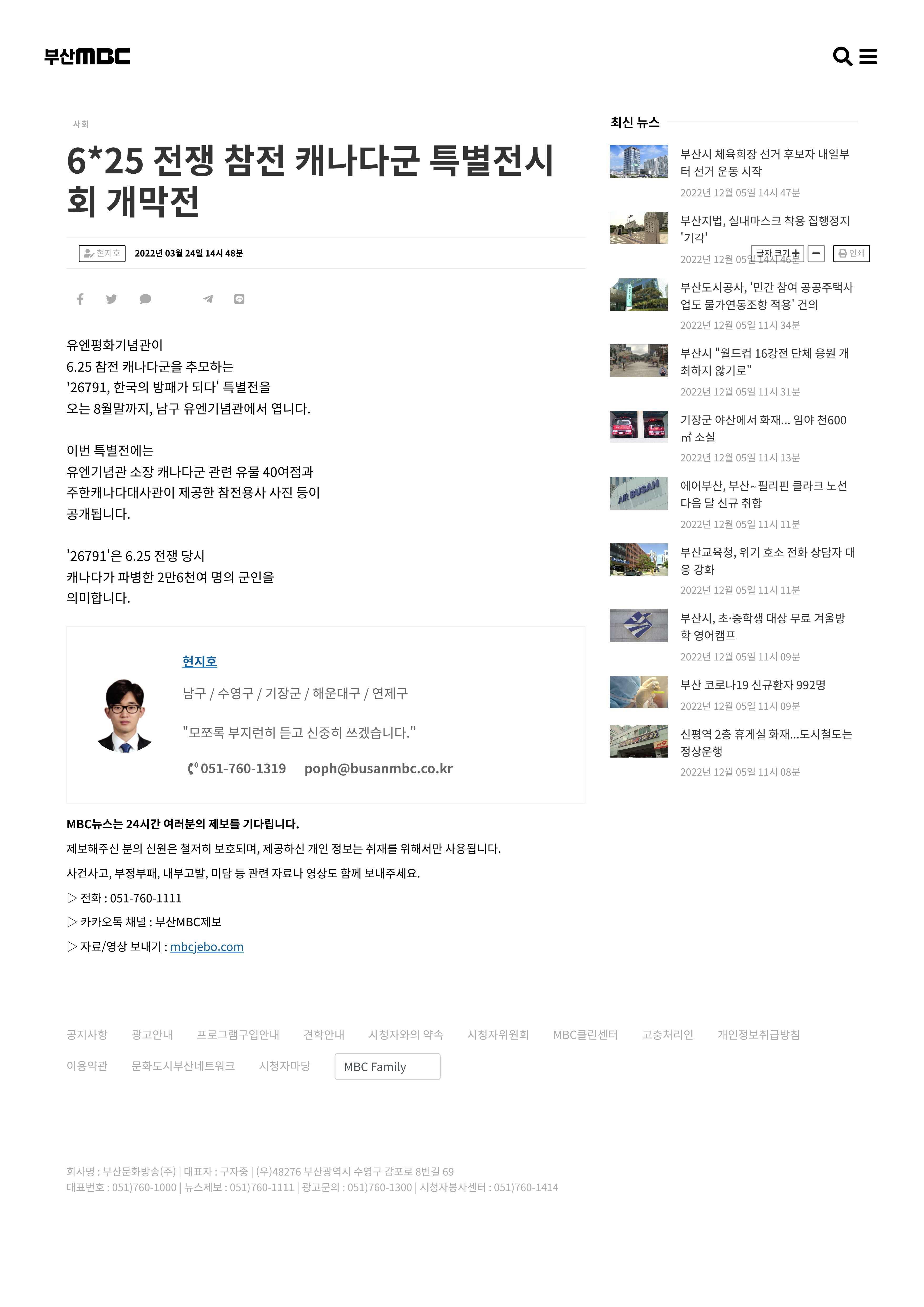 6·25 전쟁 참전 캐나다군 특별전시회 개막전