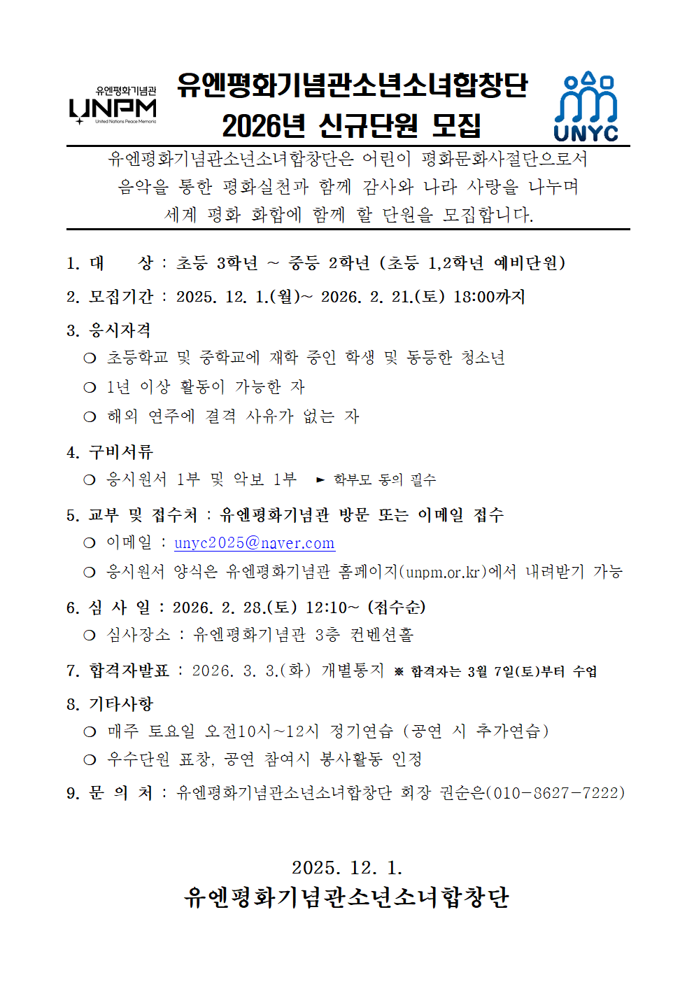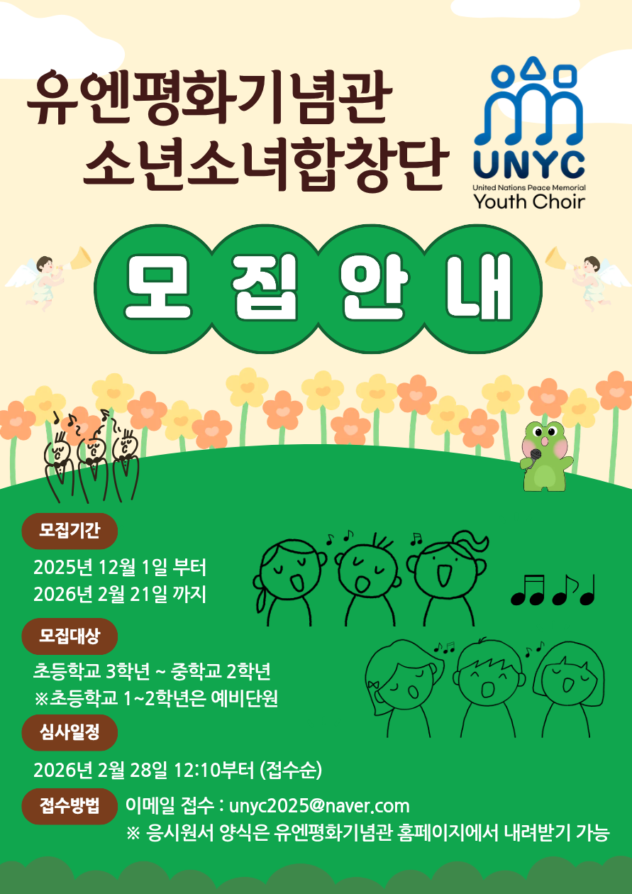 [문화예술단체] 유엔평화기념관소년소녀합창단 단원 모집(~2.21.)