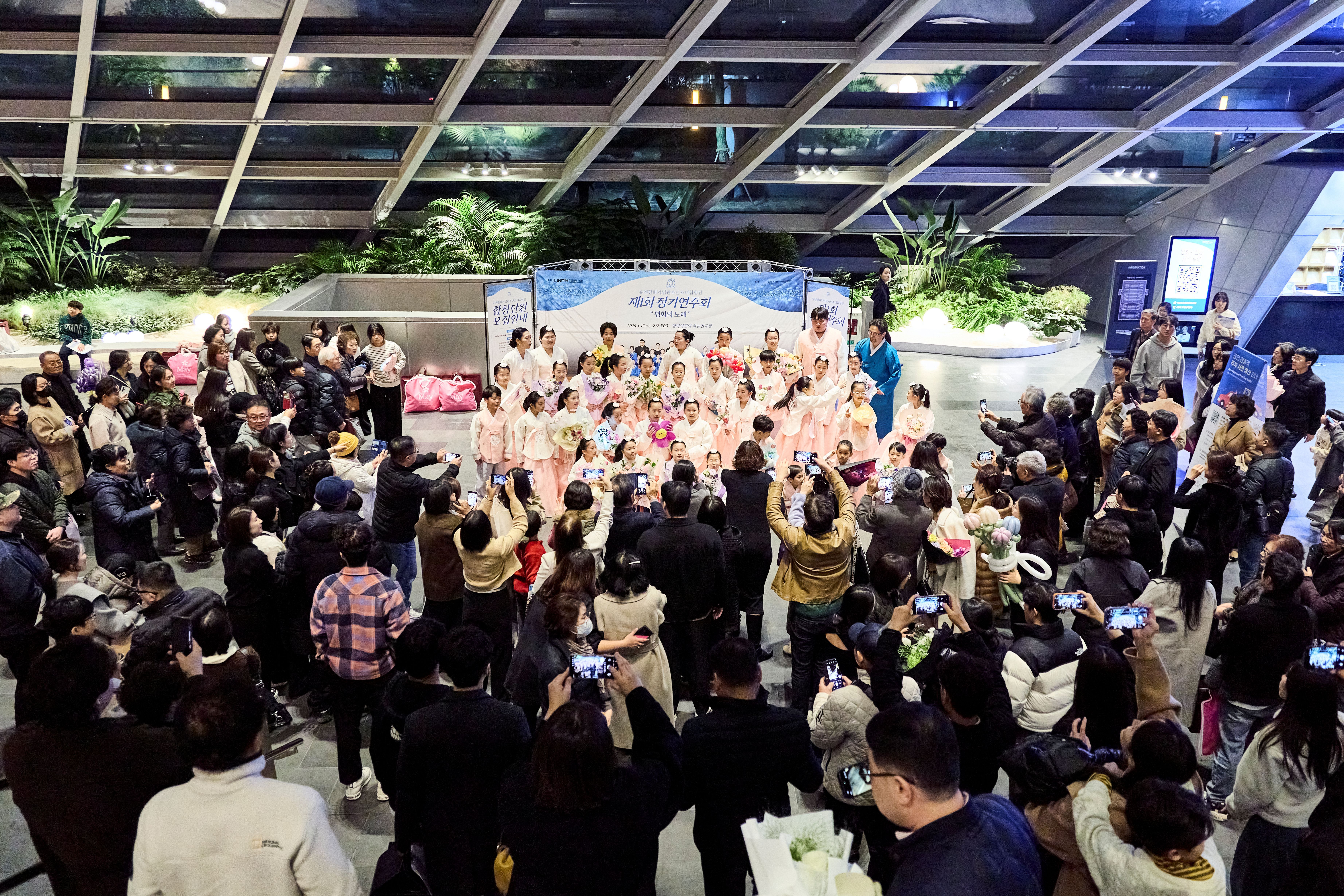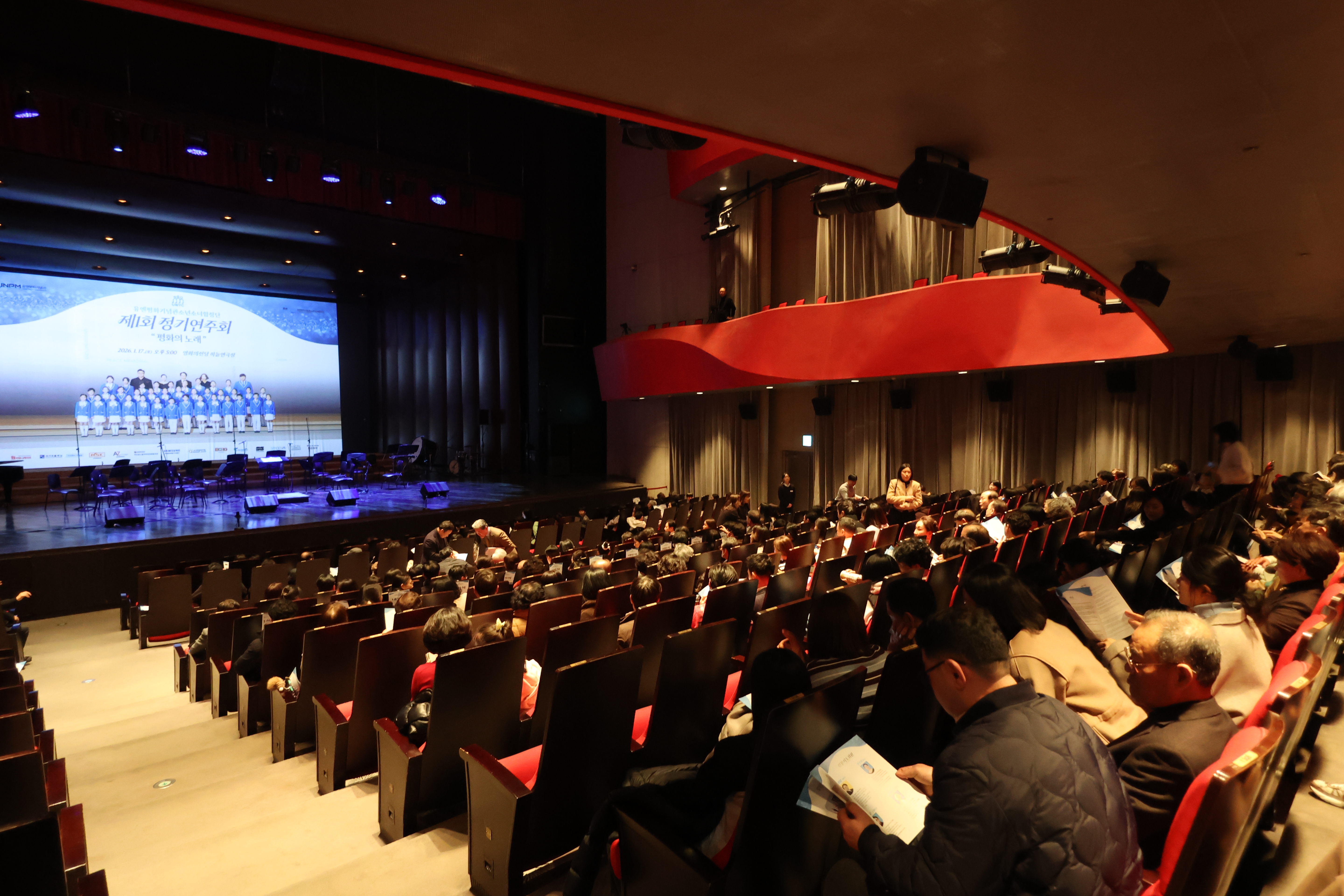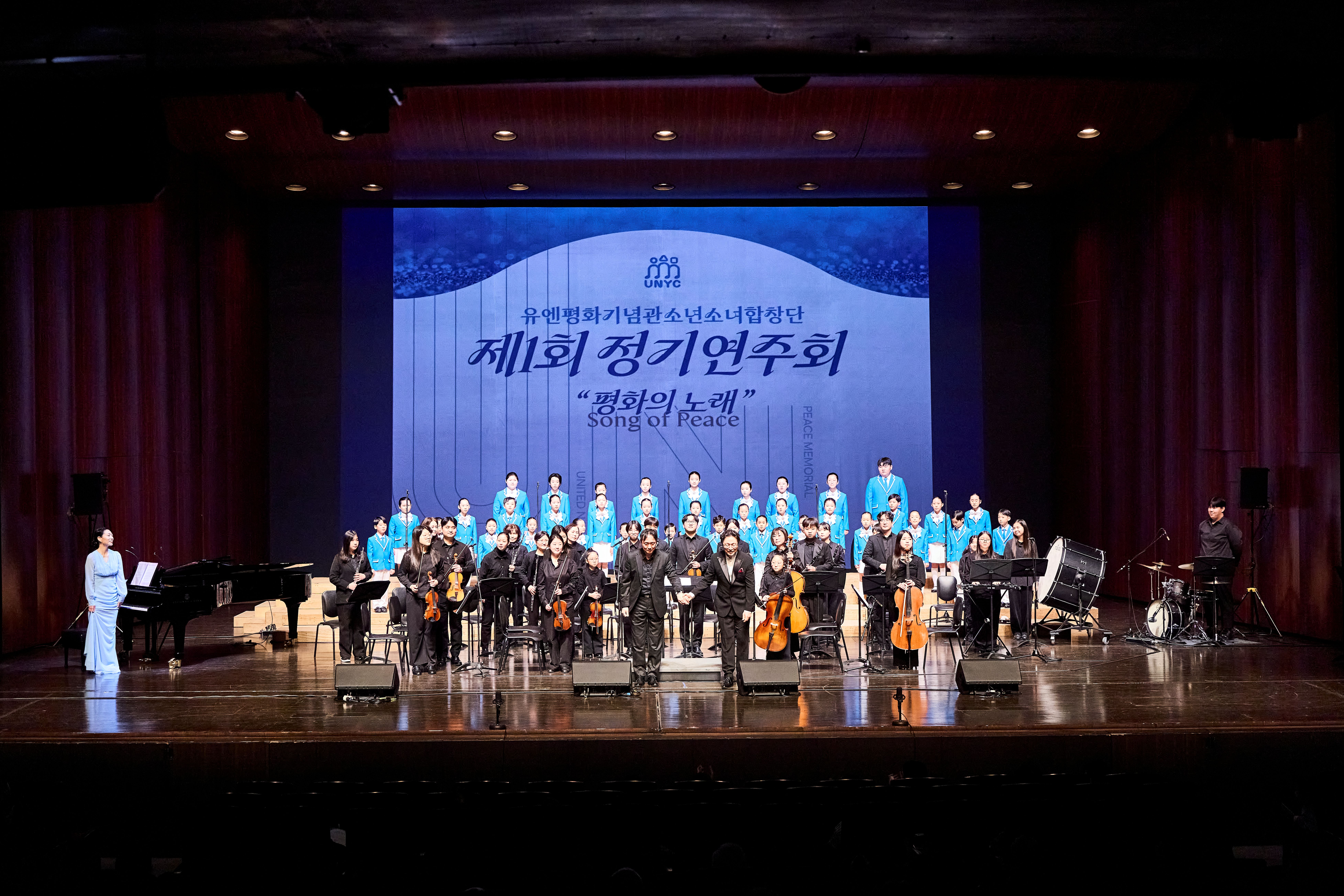 유엔평화기념관은 2026년 1월 17일(토) 영화의전당 하늘연극장에서 유엔평화기념관 소속 문화예술단체인 유엔평화기념관소년소녀합창단의 제1회 정기연주회 「평화의 노래」를 개최하였습니다. 이번 정기연주회는 6·25전쟁에 참전한 참전 영웅들의 숭고한 희생과 헌신을 미래세대가 음악을 통해 기억하고 계승할 수 있도록 마련된 자리로, '기억과 위로’, ‘아이들의 마음’, ‘함께 만드는 대한민국’ 등 세 개의 주제로 구성되었으며, 유엔평화기념관소년소녀합창단의 합창을 중심으로 유엔평화오케스트라 협연과 객원 연주자들의 무대가 더해져 깊이 있는 감동을 전하였습니다.